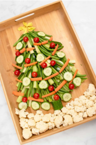 Drape thin carrot sticks and/or strips of red pepper across the tree to look like a garland.